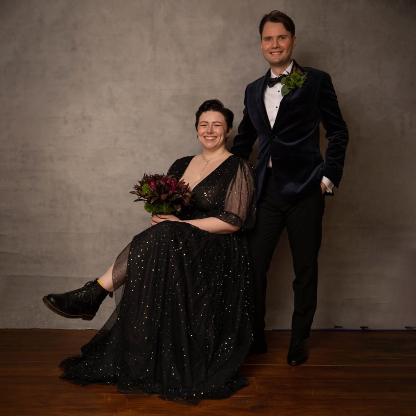 Ellen also had very specific ideas for her wedding flowers. She wasn’t interested in traditional wedding styles and standard flowers like roses. Instead, she wanted something very original, in a natural and earthy style, featuring unusual flowers in a very dark palette, for an almost gothic look to compliment her unique dark wedding dress.
