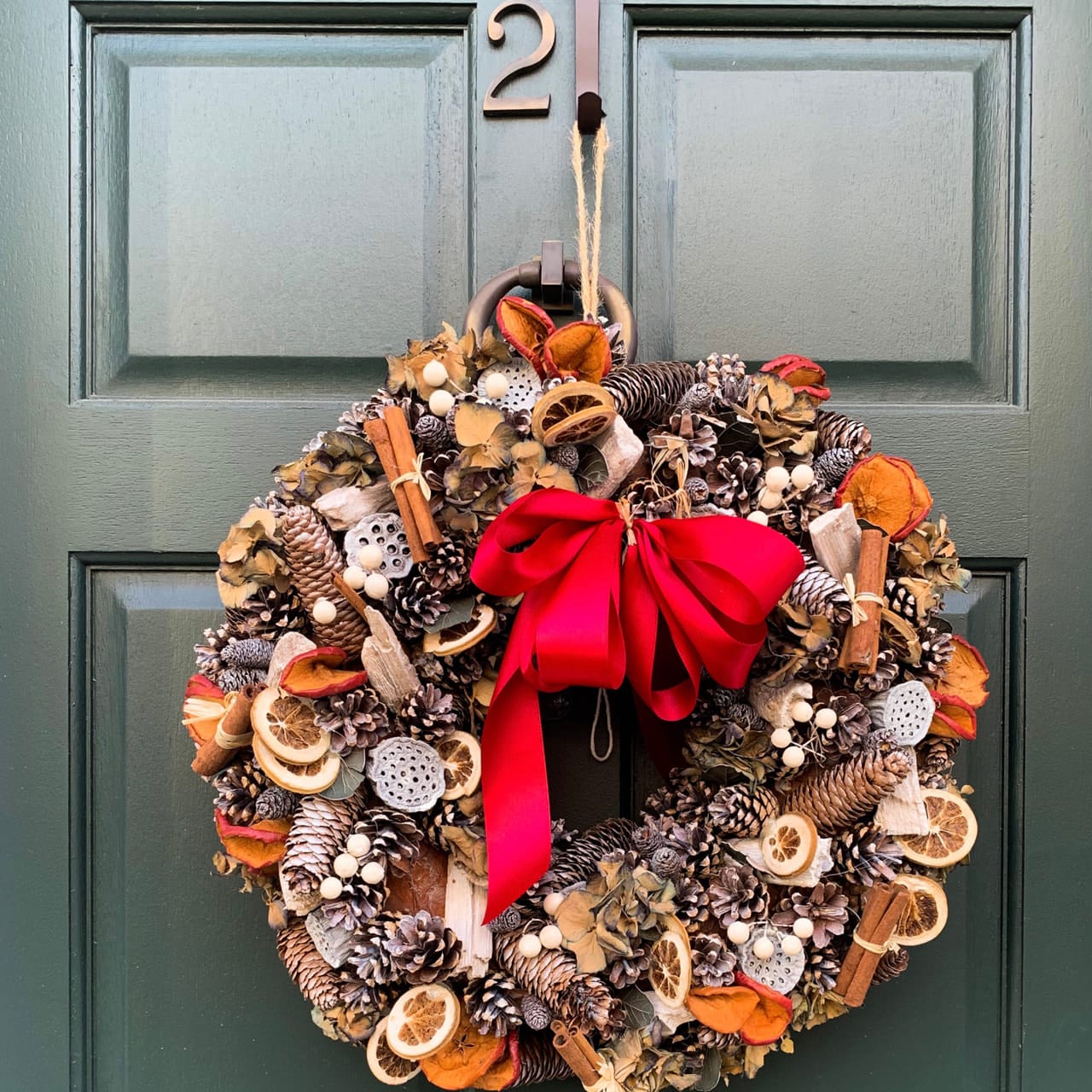 Using a decorative ribbon or rustic string is lovely as it can really add to the design, but be aware that you should take the wreath down if there are high winds as it can move around and may get damaged.