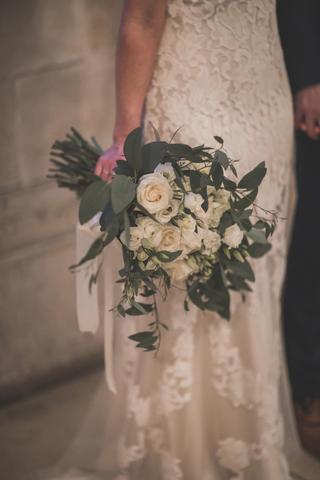 They decided on an airy, carefree style of white flowers dispersed with stunning mixed greenery. The natural, elegant look fitted their wedding style perfectly. For her sisters, Sinéad picked pure gypsophila bouquets. Kevin’s buttonhole matched Sinéad’s bouquet to tie the whole look together. We added a few arrangements for the house that furthered Sinéad’s theme of delicate chic.