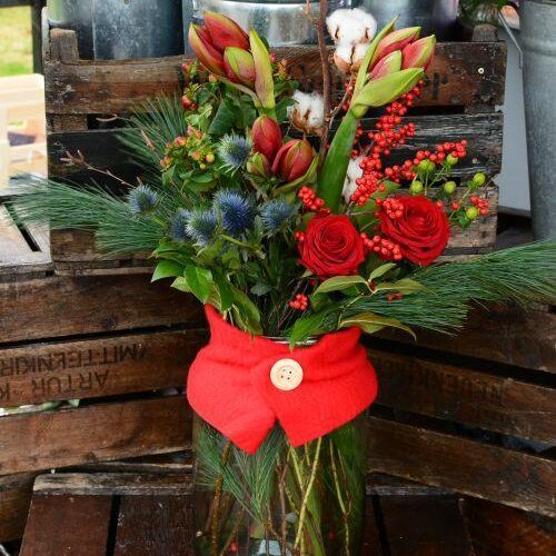 You garnish your tree, we garnish our vases! A customer favorite since 2016, we bring you our Christmas Vase - for your Christmas floral centrepiece made easy. Our beautiful winter blooms made up of roses, twigs, thistles, lilies, berries and more!